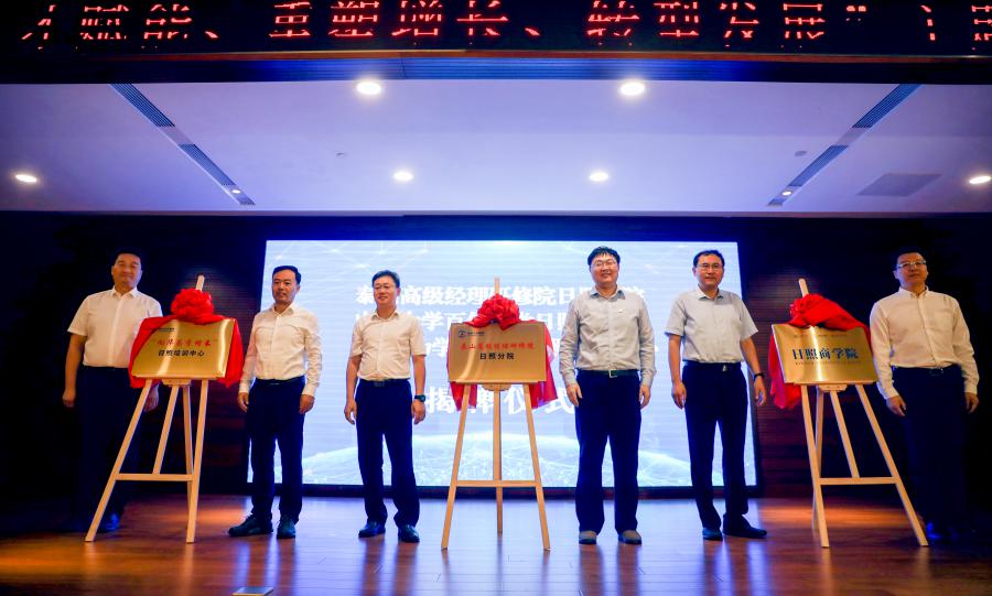 論壇上,泰山高級(jí)經(jīng)理研修院日照分院、山東大學(xué)百年學(xué)堂日照商學(xué)院、向華為學(xué)增長日照培訓(xùn)中心同時(shí)揭牌。