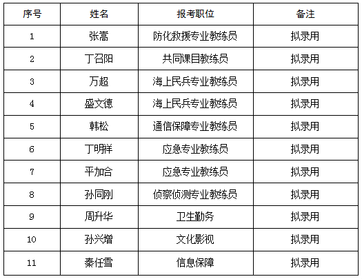 日照陸橋人力資源有限責(zé)任公司根據(jù)工作需要面向社會公開招聘民兵教練員、社會用工人員,派遣到相關(guān)單位工作。經(jīng)過體能測試、技能測試、面試、體檢及考察,擬錄用11人。現(xiàn)將擬錄用人員名單公示如下,公示期限自2025年11月11日至2025年11月17日,公示期內(nèi)如有異議,可向日照陸橋人力資源有限責(zé)任公司反映,聯(lián)系電話:0633-8866276。