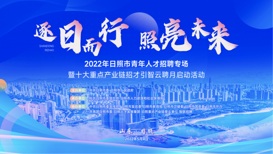 近日 我市啟動(dòng)青年人才招聘專場 暨十大重點(diǎn)產(chǎn)業(yè)鏈招才引智云聘月活動(dòng) 現(xiàn)場發(fā)布崗位需求3469個(gè) 5月6日 日照市人力資源和社會(huì)保障局公布 2022年日照市青年人才 招聘專場崗位需求信息